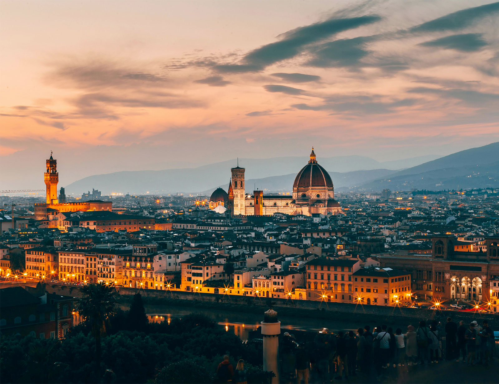 Parco privato del palazzo residenziale di Palazzo Pitti, il Giardino di Boboli collega il famoso palazzo di Firenze con il Forte Belvedere. 45.000 m², il parco ospita statue, residenze varie e musei, e presenta una struttura architettonica con un bar paesaggistico che lo rende unico al mondo. Il giardino comprende anche il Museo degli Argenti, la Galleria del Costume e il Museo delle Porcellane. Un’enorme terrazza panoramica da cui godere di una vista spettacolare della città, Piazzale Michelangelo fu realizzata quando Firenze divenne Capitale d’Italia, il panorama della piazza regala una vista suggestiva: i ponti si susseguono elegantemente, illuminati dai colori che si specchiano sulle acque dell’ Arno, tutta la città è a portata di mano, così come le colline che la abbracciano.
