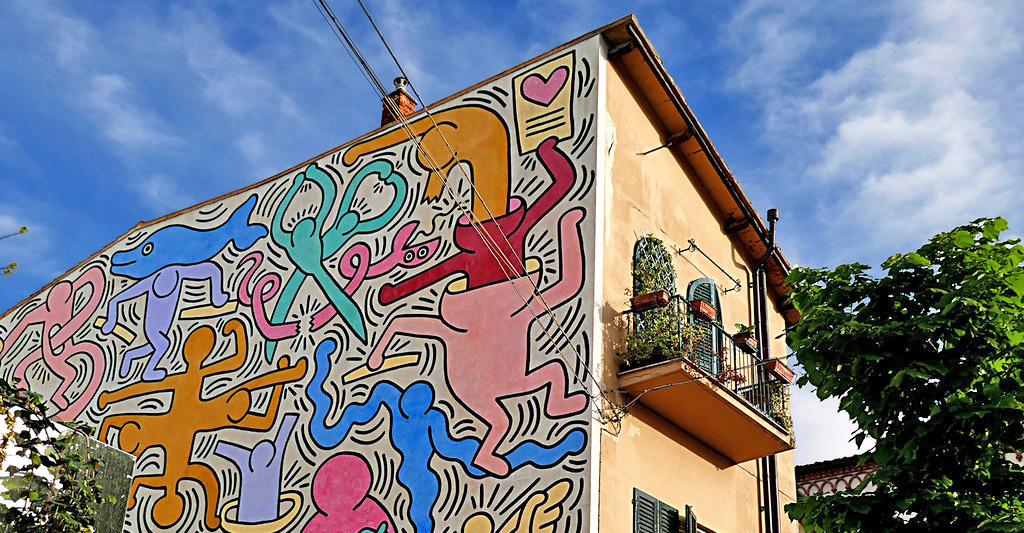 Nel 1989, passando per Pisa, Keith Haring lascia alla città un’opera d’arte straordinaria: è il murale “Tuttomondo” dipinto sulla facciata posteriore del convento dei frati servi di Maria della chiesa di Sant’Antonio.